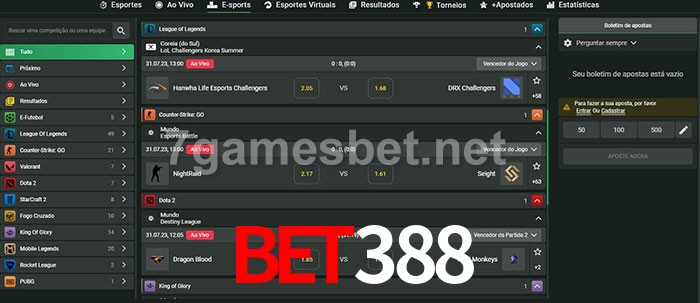 O bet388 oferece uma grande seleção de opções de apostas em e-sports com probabilidades competitivas